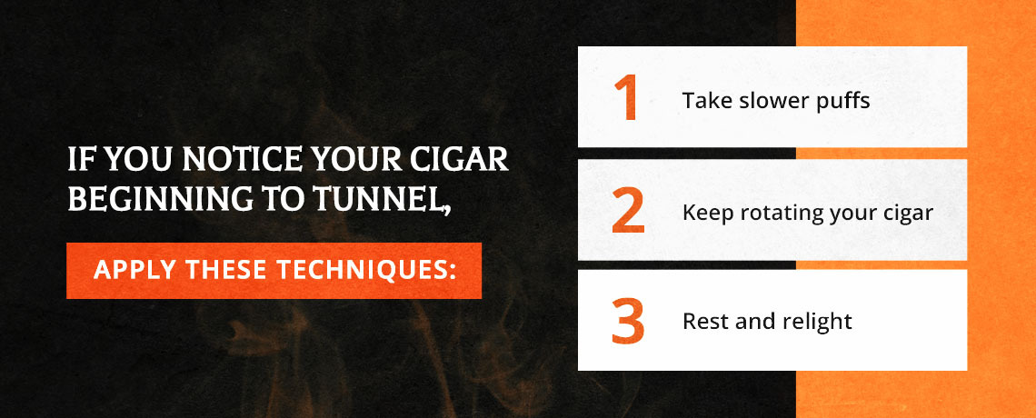 If you notice your cigar beginning to tunnel, apply these techniques: