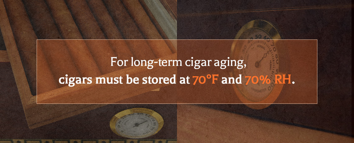 Even the best cigars can lose flavor if stored improperly. For long-term cigar aging, which can sometimes span years or decades, cigars must be stored at 70 degrees Fahrenheit and 70% relative humidity (RH).