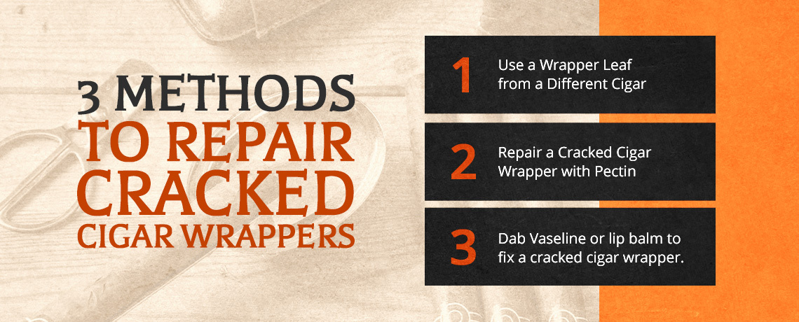 If your cigar wrapper is cracked, you may want to have a go at fixing the damage yourself. It's important to remember that learning how to repair cracked cigar wrappers depends on how badly damaged the cigar is and what materials you have available. However, some common and successful repair methods include: